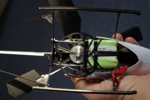 Conrad liefert den Heli inkl. Fernsteuerung (40 MHz) sofort komplett flugfertig aufgebaut und voreingestellt. So soll man mit diesem Elektro-Indoorheli bereits nach kurzer Übungszeit die ersten längeren Schwebeflüge absolvieren können. Muss ich mal in Ruhe auf 35 MHz umbauen, damit ich meine MC22 nutzen kann.